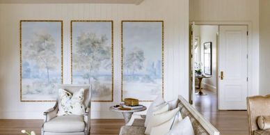 Walls become works of art with custom-framed wallpaper panels, bringing texture, color, and timeless elegance into any space.